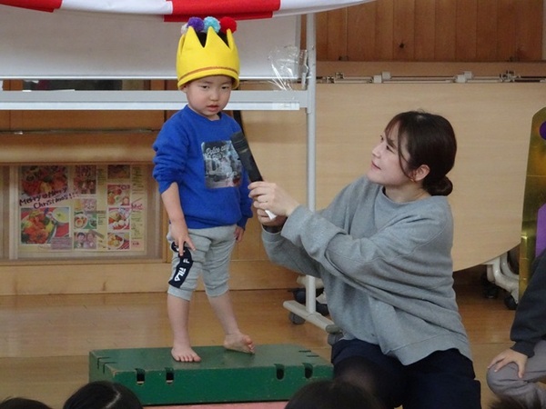 | 7月生まれのおたんじょう会です!「すきなたべものはなんですか?」「なっとー!(納豆)」と元気に答えてくれました。すばらしい☆ 2歳児クラスからのダンスもありました。楽しそうに踊っていて、みんなもうれしくなりましたね♪ おたんじょうび、おめでとうございます! |