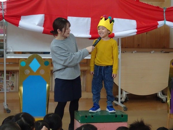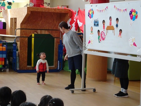 | 延期になっていた2月生まれのおたんじょう会を行いました。 みんな堂々とインタビューに答えていて、立派でしたね! 先生からの出し物の途中、「わたしのせんせーがあそこにいる〜」とトコトコ歩いて行った女の子。微笑ましい光景でした♡ おたんじょうびのみなさん、おめでとうございます☆ |