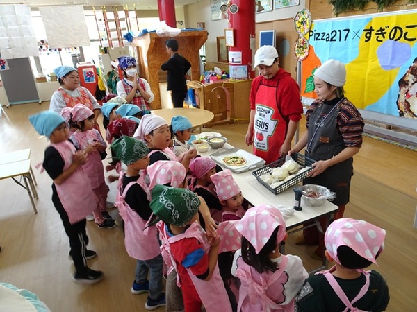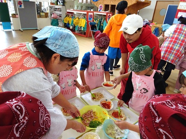| おたんじょう会のあとはひさしぶりの「ラーメンバイキング!!!」 年長さくらぐみがお仕事をしてくれました。 「たべる?たべない?」 「たべる!」 なんとも微笑ましい♡ すきな具材、すきなスープを選んで、自分だけのラーメンをいただきました♪ お給食の先生、いつもありがとうございます!おいしかった〜! |